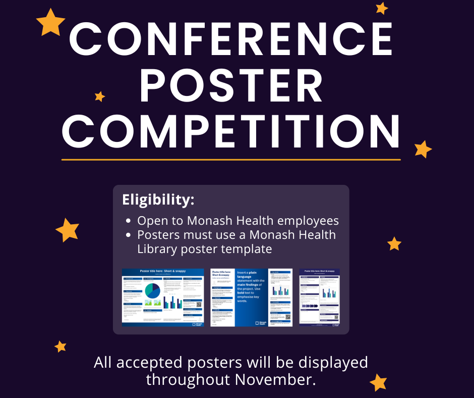 - All accepted posters will be displayed in Monash Health Libraries in October and November.